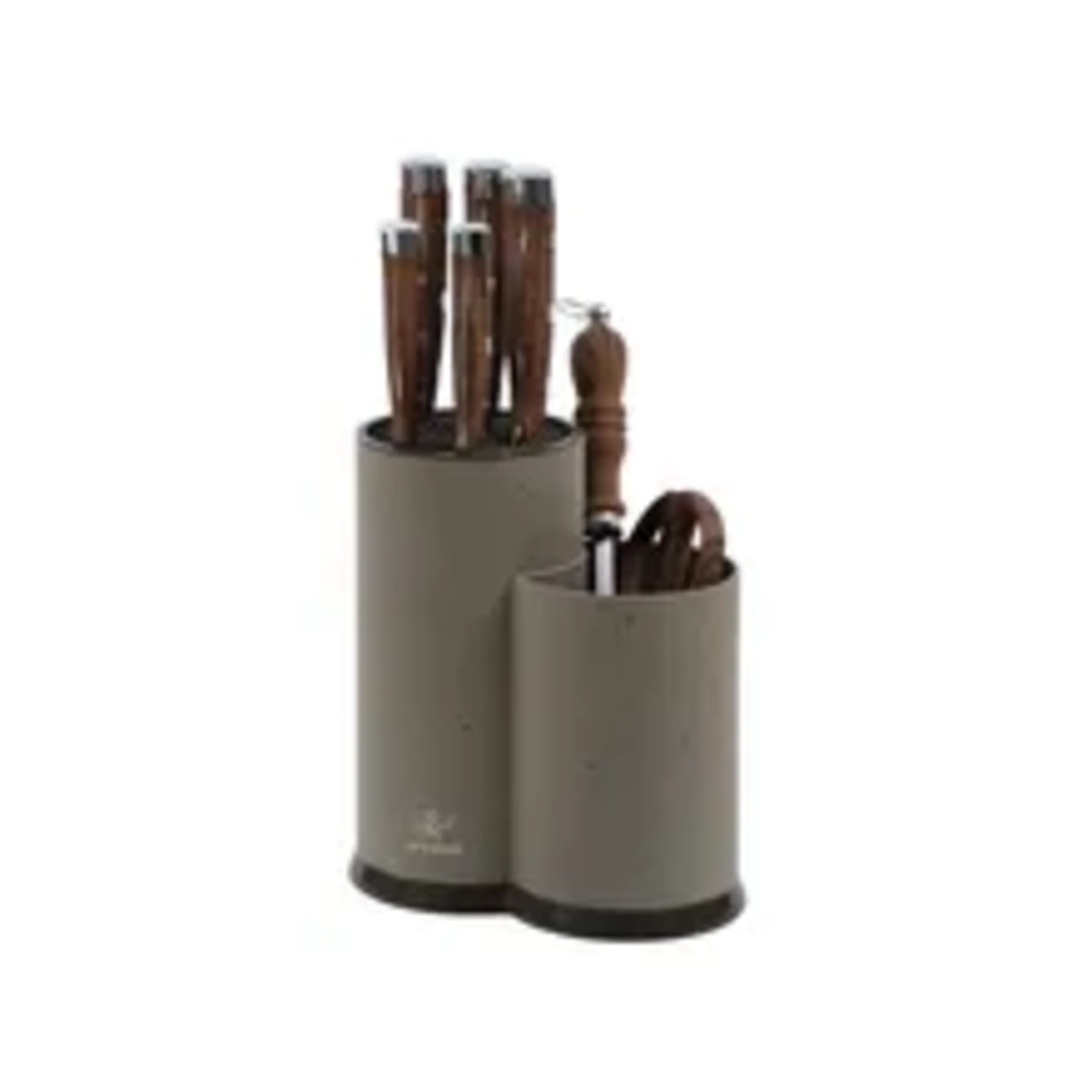سرویس چاقو آشپزخانه لایف اسمایل مدل NSEL-2 زیر نظر بهترین سرآشپزهای دنیا طراحی و تولید شده است. نتیجه این همکاری ساخت چاقوهای باکیفیت با دستههای منحصر به فرد است. مجموعه چاقو لایف اسمایل از 8 پارچه مختلف شامل چاقو سرآشپز، چاقو نان، چاقو برش خورده، ابزار چاقو، چاقو تکهای، شاپنر، قیچی و جعبه نگهداری تشکیل شده است.
