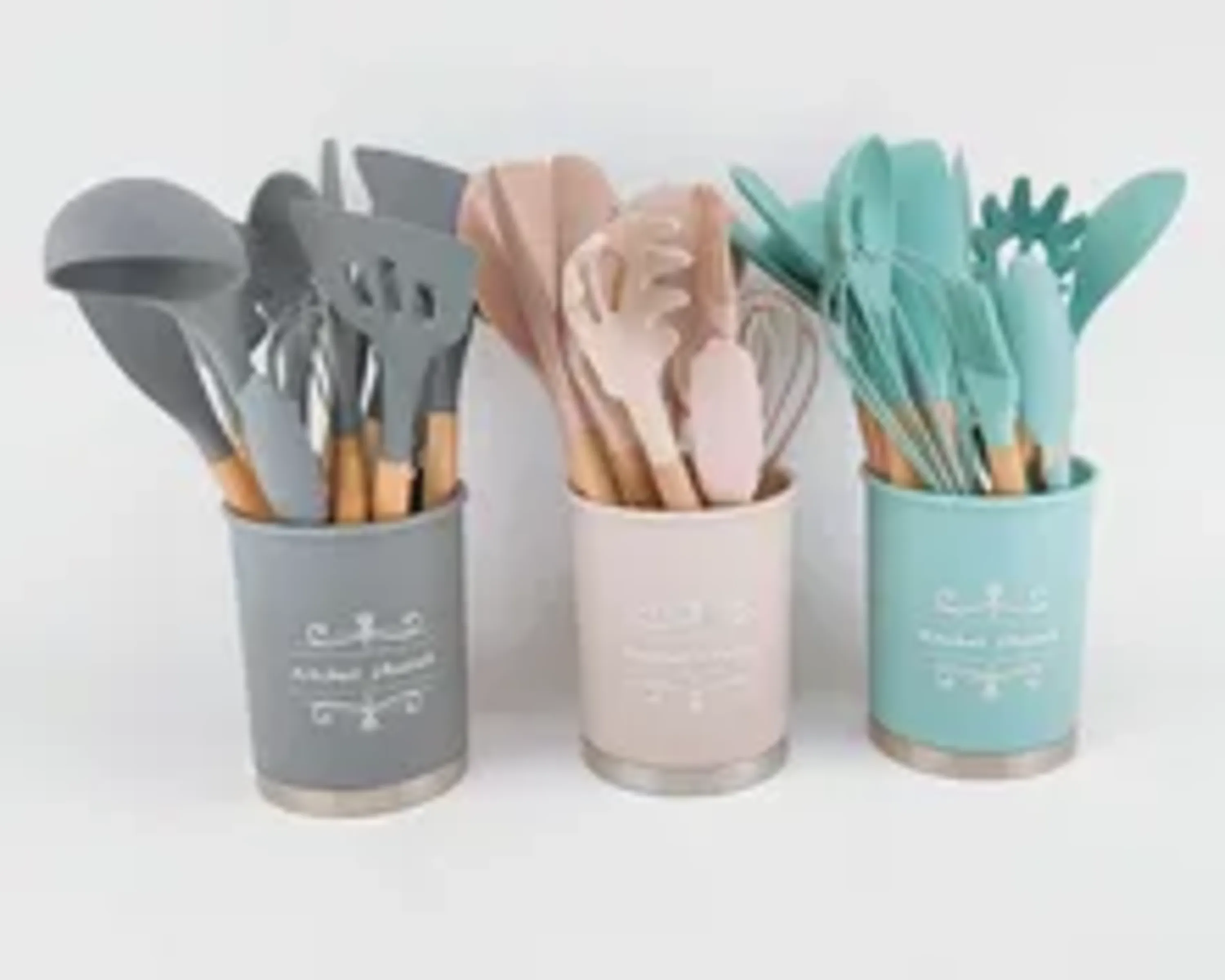 دسته های چوبی از جنس بامبو و یک ظرف نگهدارنده از جنس پلاستیک میباشد. این سرویس از وزن متعادل و دیزاین منحصر بفردی برخوردار است که باعث میشود در دست گرفتن آن آسان و پخت و پز را راحت می کند. سیلیکون به کار رفته در این محصول ساخته شده از مواد غیر سمی ، بی بو و سازگار با محیط زیست است. سرویس کفگیر ملاقه سیلیکونی دسته بامبو در برابر درجه حرارت سرما تا 30- و گرما 230+ درجه سانتی گراد مقاومت دارد. انعطاف پذیری ، رویه های نرم از خراشیدن و آسیب رساندن به ظروف شما جلوگیری میکند و همچنین باعث کاهش سر و صدا هنگام آشپزی می شود