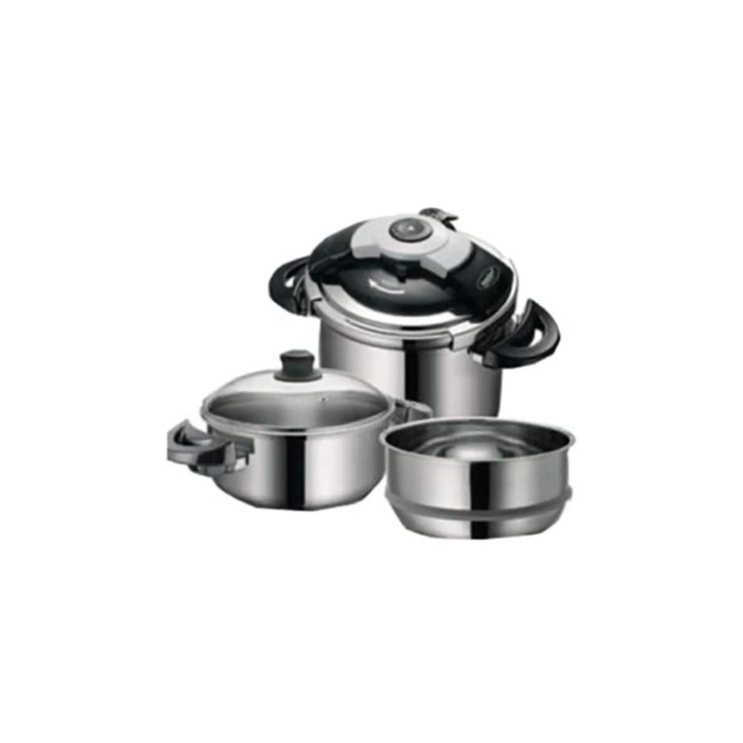 ملاقه , کفگیر, درپوش اصلی, درپوش داخلی, درپوش اضافه, واشر سیلیکونی, پایه سبد بخارپز, دفترچه راهنما