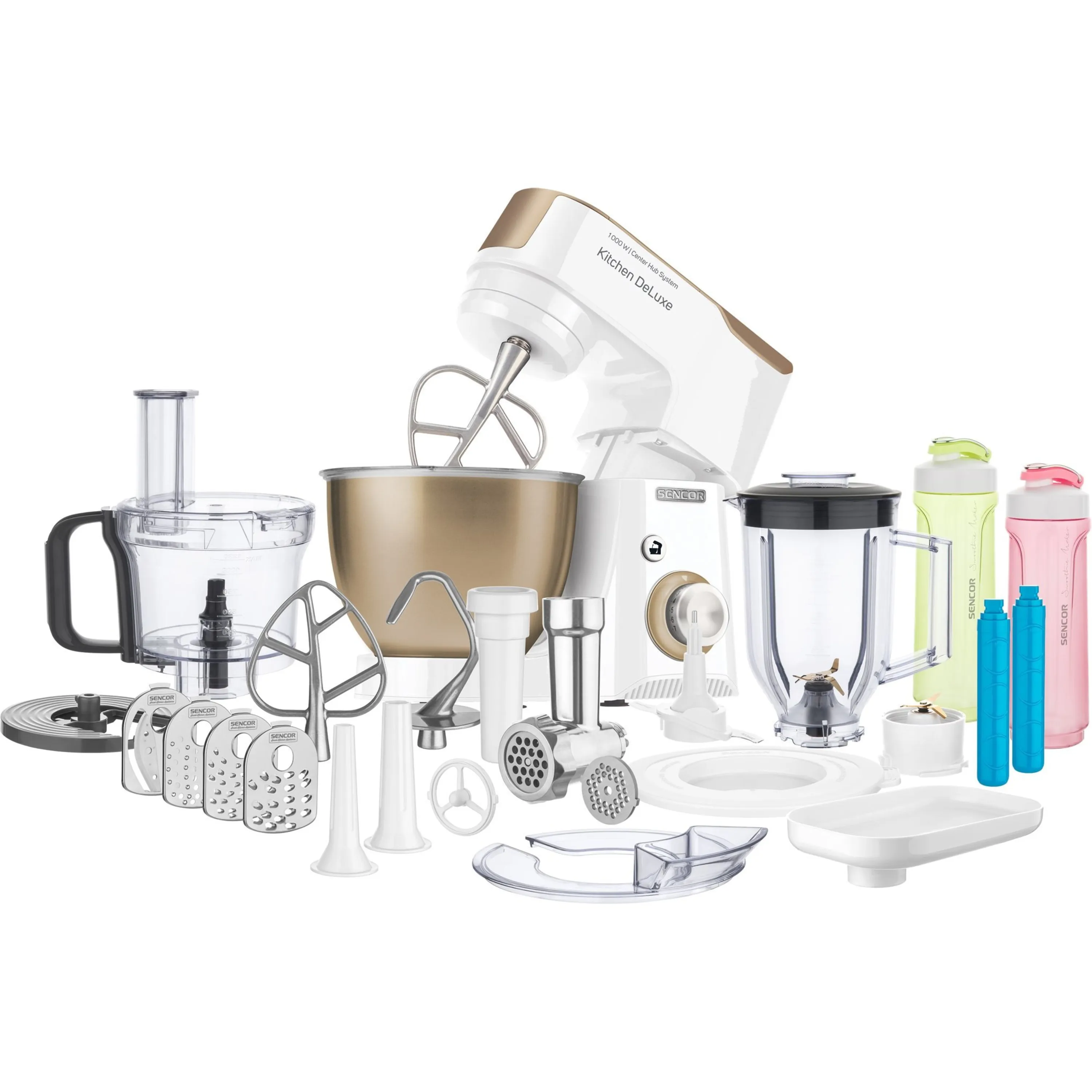 2 عدد پارچ اسموتی 600 میلی لیتری به همراه درب اسموتی و محفظه نگهداری یخ, خردکن برای خرد کردن سریع و آسان گیاهان، پیاز یا ادویه ها, درپوش شفاف, شبکه 4.5 میلیمتری چرخ گوشت, شبکه 8 میلیمتری چرخ گوشت, ظرف غذا ساز 1.25 لیتری
