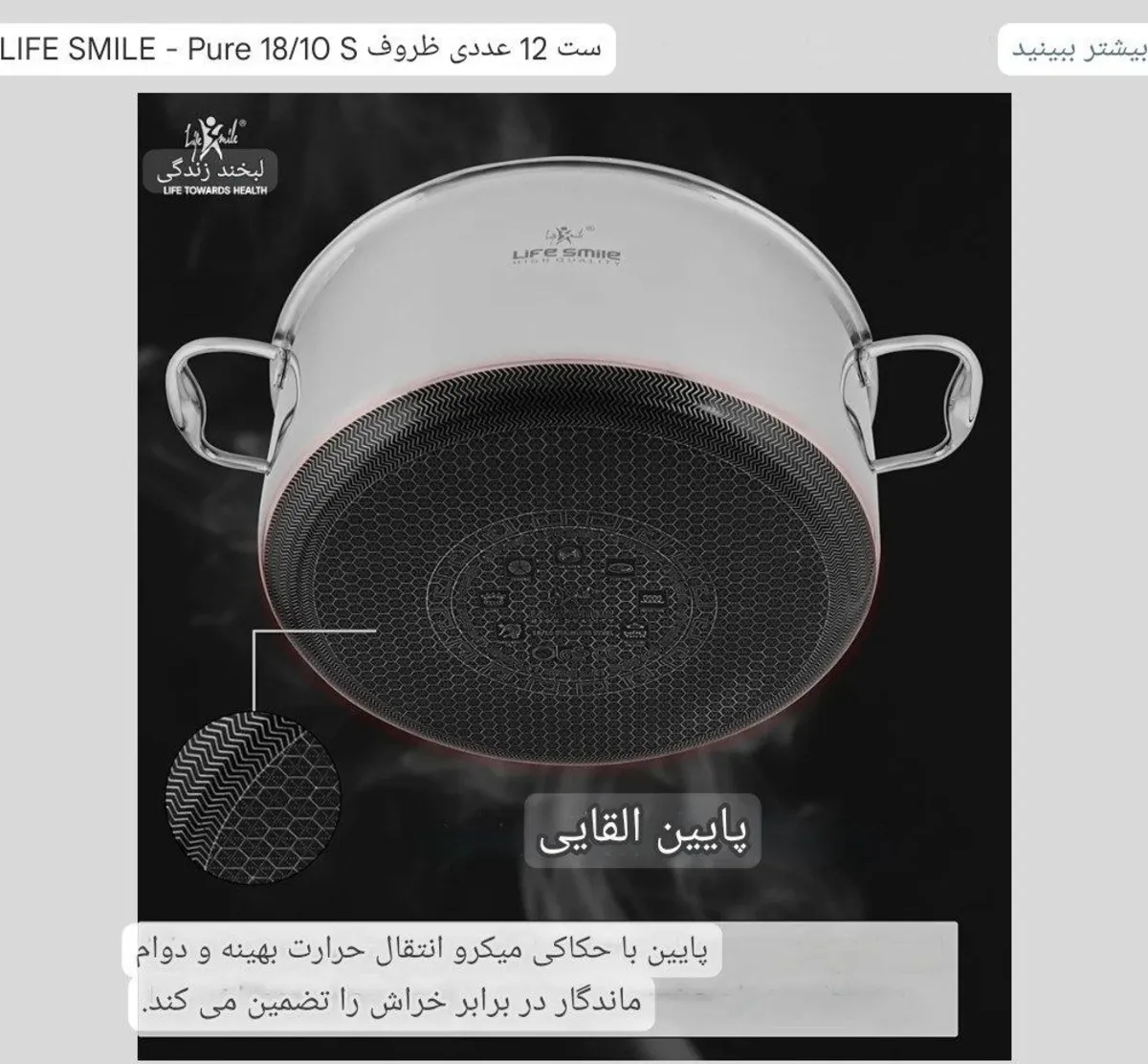 سرویس قابلمه لایف اسمایل مدل P-18 12 پارچه استیل کف لیزری