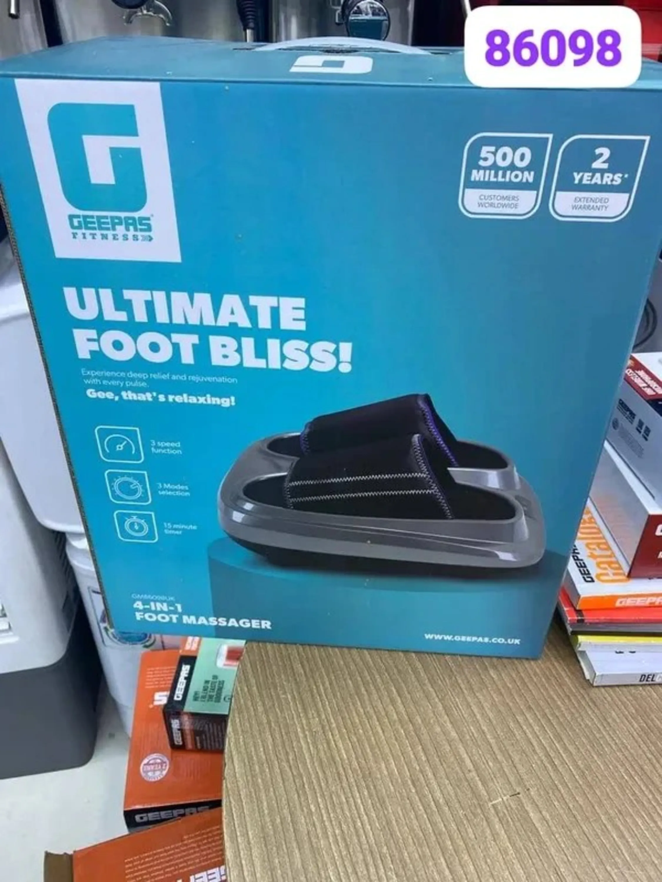 ماساژور پا 4 در 1 Geepas- GM86098UK/ 3 حالت، عملکرد 3 سرعت، تایمر 15 دقیقه ای، 3 سرعت ورز دادن، ضربه زدن و ماساژ، اندازه پا / تسکین درد، ...