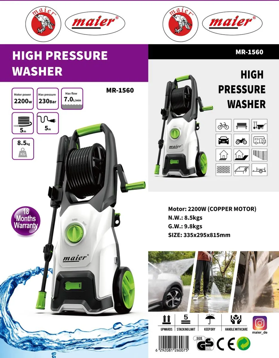 اگر بهدنبال تمیزی عمیق و سریع برای خودرو، حیاط و نما هستید، کارواش مایر مدل MR-1560 همان دستگاهی است که کار را حرفهای و درعینحال ساده میکند. چیدمان استاندارد این رده شامل نازلهای چندحالته (زاویه پاشش متنوع)، تفنگی ارگونومیک، شیلنگ فشار قوی و بطری کفساز/مخزن مواد شوینده است تا از «مرحله خیساندن» تا «آبکشی نهایی» همهچیز در کنترل شما باشد. با توجه به محدود بودن منابع عمومی آنلاین درباره مشخصات دقیق کارواش مایر مدل MR-1560، اعداد فنی مانند فشار کاری و توان موتور را هنگام نهاییسازی صفحه محصول از تأمینکننده تأیید کنید؛ اما شیوه استفاده ایمن و چینش اقلام این رده در منابع معتبر حوزه دیتیلینگ و کارواش خانگی، بهصورت عمومی یکسان است. :contentReference[oaicite:0]{index=0}
