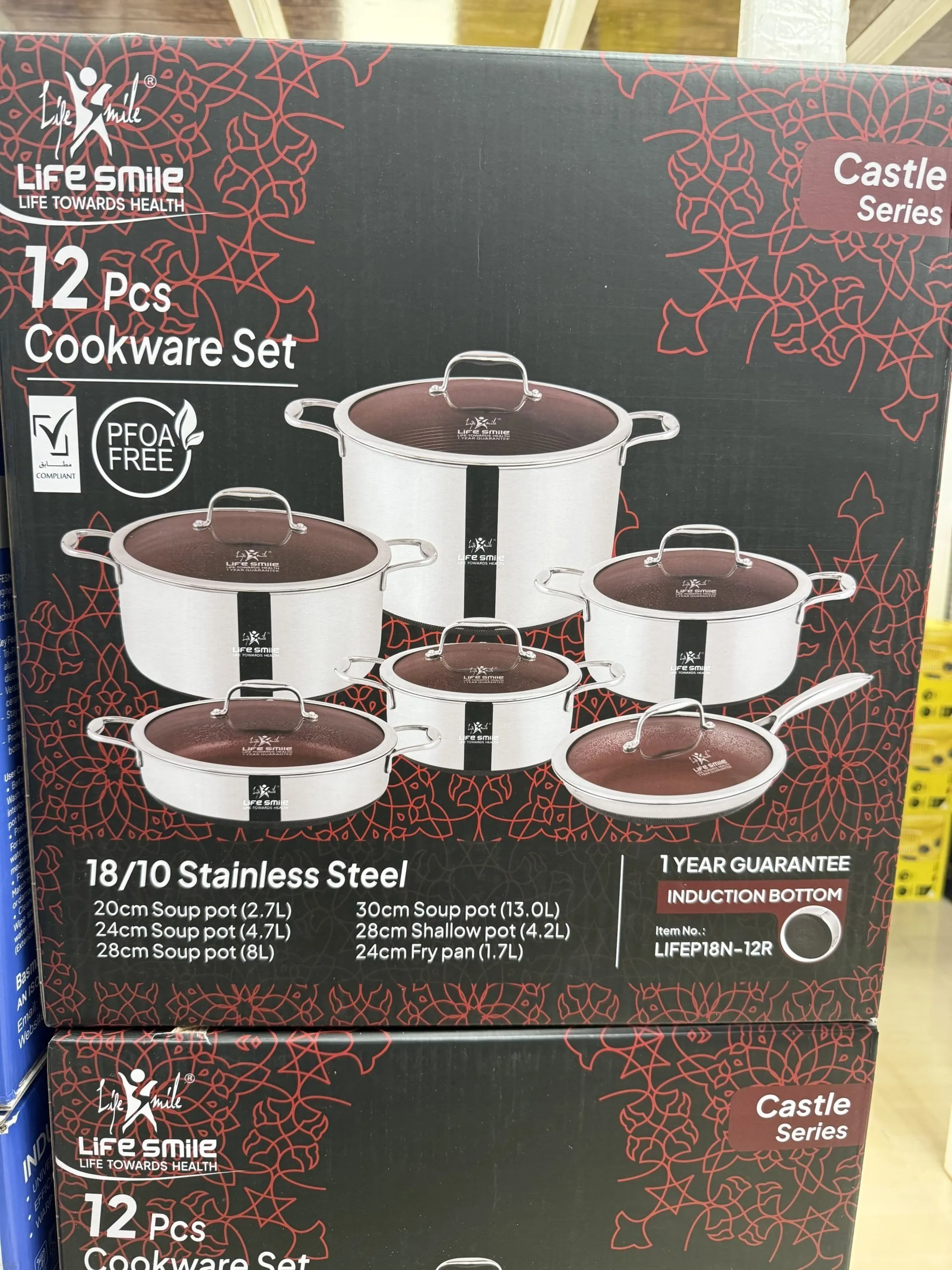 سرویس قابلمه لایف اسمایل مدل LIFEP18N-12R ظرفیت 12 پارچه استیل دوطرف لیزری(رنگ قرمز)