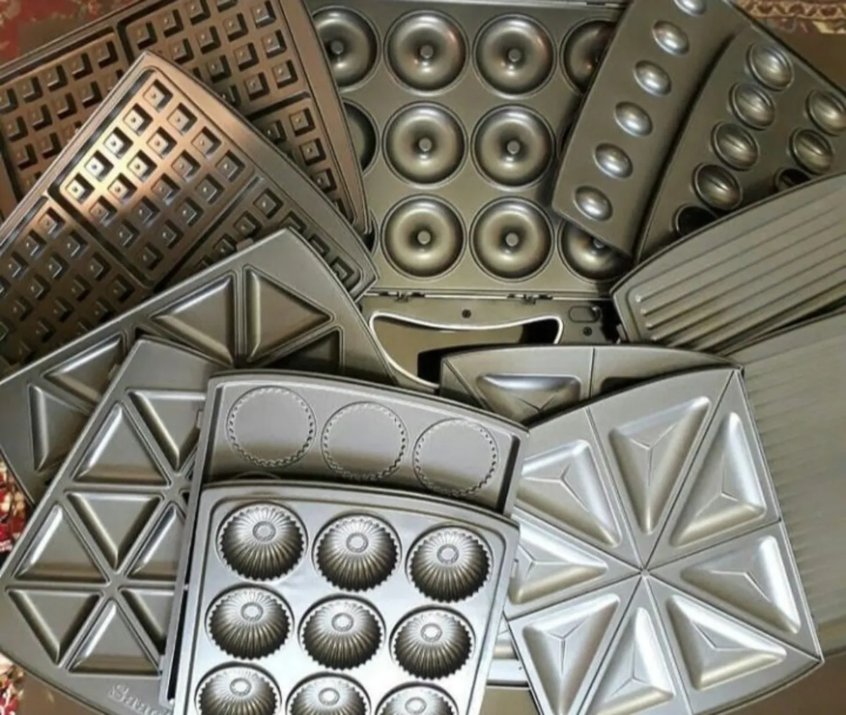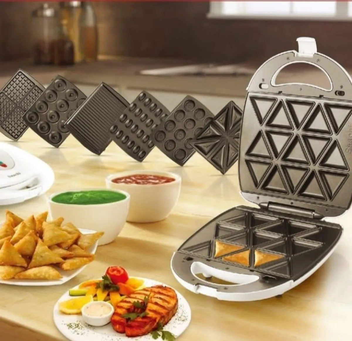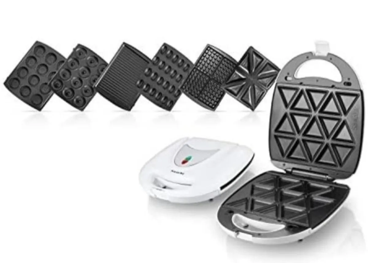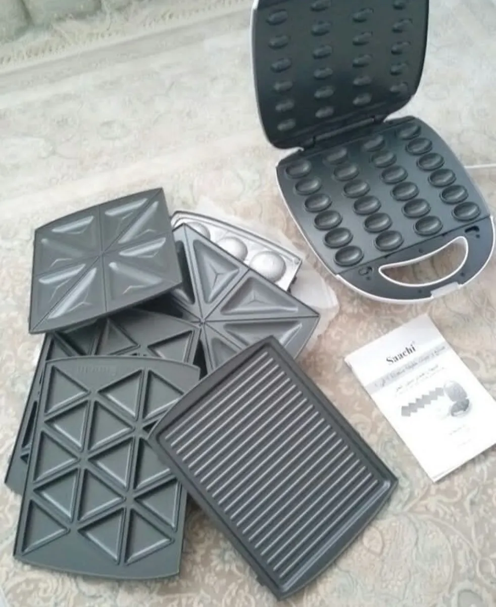 12 عدد وافل, 4 عدد ساندویچ, 4 عدد گریل, آجیل 24 عدد, بشقاب های جداشدنی نچسب, بیسکویت, دونات 12 عدد, سمبوسه 15 عدد, فرکانس: 50/60 هرتز, کنترل ترموستات اتوماتیک, ولتاژ: AC 220-240 ولت